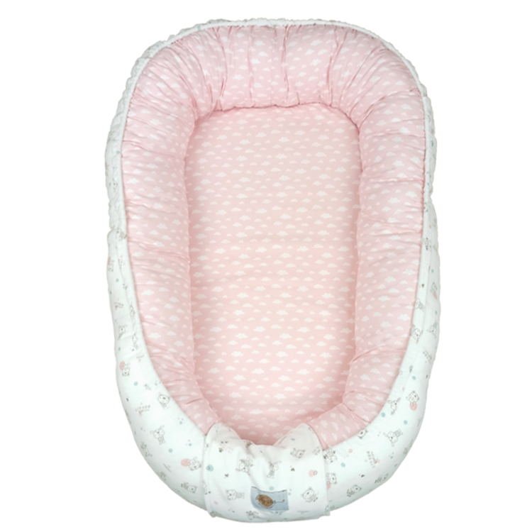 Διαθέτει κορδονάκια στο κάτω μέρος για να αυξομειώνεται το μέγεθος της ανάλογα με το βρέφος. Το ψηλό περιμετρικό της τοίχωμα προστατεύει το μωρό από χτυπήματα όταν αρχίσει να γίνεται κινητικό. Το εσωτερικό γέμισμα είναι από υποαλλεργικό χνούδι σιλικόνης, τα υφάσματα είναι και αυτά υποαλλεργικά με πιστοποίηση ΟΕKo tex standard 100. Πλένεται στο πλυντήριο στους 30 βαθμούς αφού πρώτα αφαιρεθεί το στρωματάκι της (υποαλλεργικό σφουγγάρι-πλένεται μόνο στο χέρι). Διατίθεται σε τσάντα υφασμάτινη.