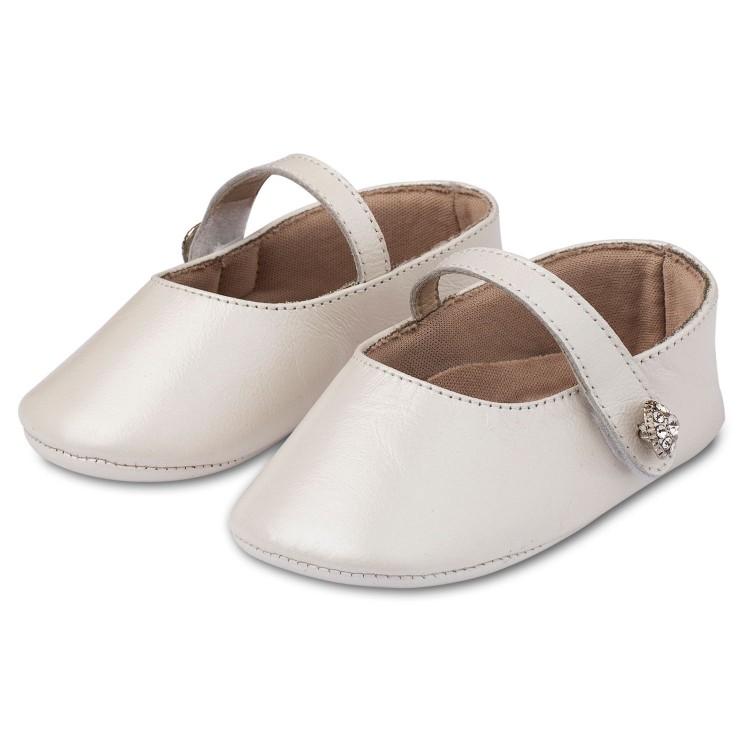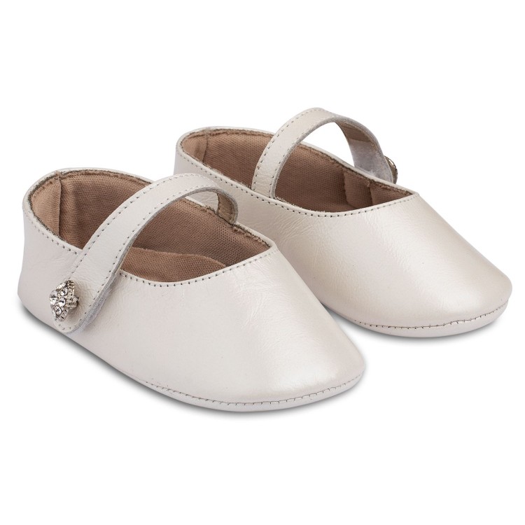 Δερμάτινο Γοβακι Μονή Μπαρέτα με Στρασένιο Κουμπακι σε Εκρού Χρώμα