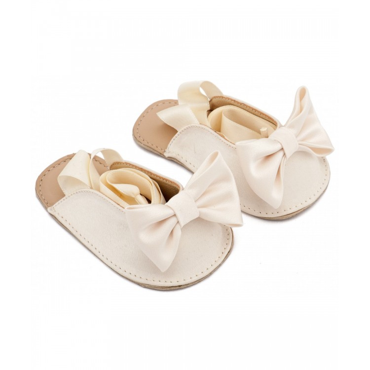 Υφασμάτινο γαλλικό σαμπό σε κομψό εκρού χρώμα, διακοσμημένο με σατέν φιόγκο, που χαρίζει ρομαντική και εκλεπτυσμένη αισθητική.