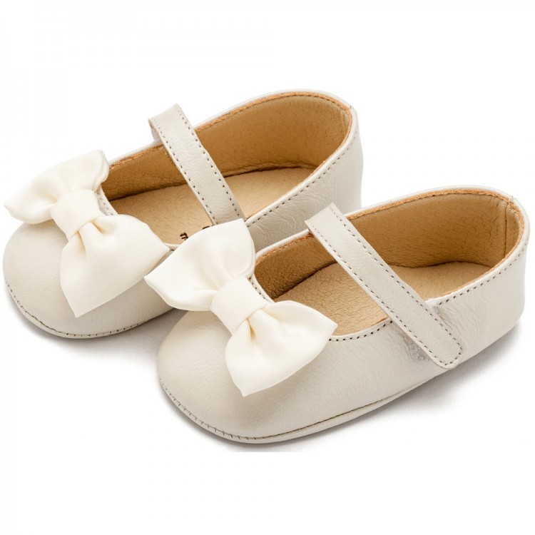 BabyWalker Βαπτιστικά παπούτσια κορίτσι γοβάκι με υφασμάτινο χειροποίητο φιογκάκι Εκρού MI.1646