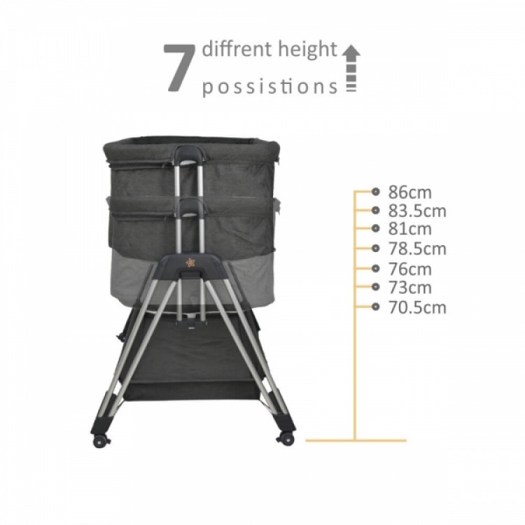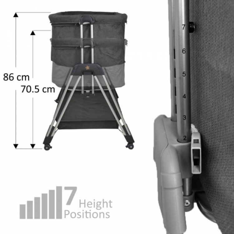 – Ρυθμιζόμενο ύψος σε 7 διαφορετικές θέσεις για να προσαρμόζεται στο κρεβάτι σας, ώστε να έχετε το μωρό σας πάντα δίπλα σας.