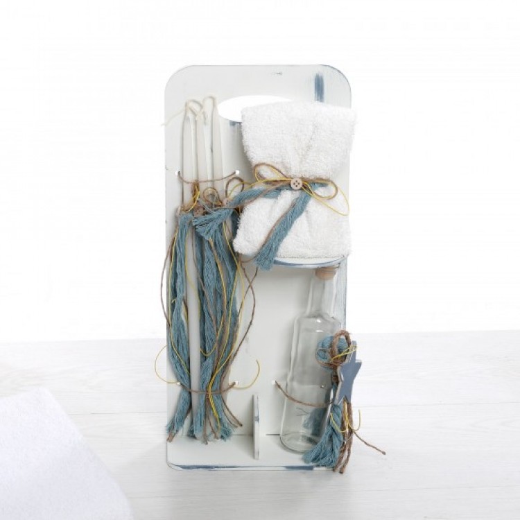 ✔ Σετ λαδιού με μπουκαλάκι, σαπούνι και κεράκια, διακοσμημένα με κορδέλες και υφασμάτινες λεπτομέρειες.