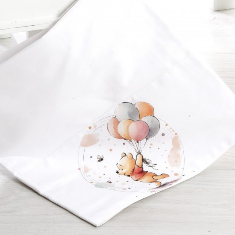 ✔ Ξύλινο παγκάκι-κουτί ζωγραφισμένο στο χέρι, με τον Winnie the Pooh που κρατάει μπαλόνια, συνοδευόμενο από χαρούμενα στοιχεία και αστεράκια. (Διαστάσεις: 80cm x 50cm x 32cm)