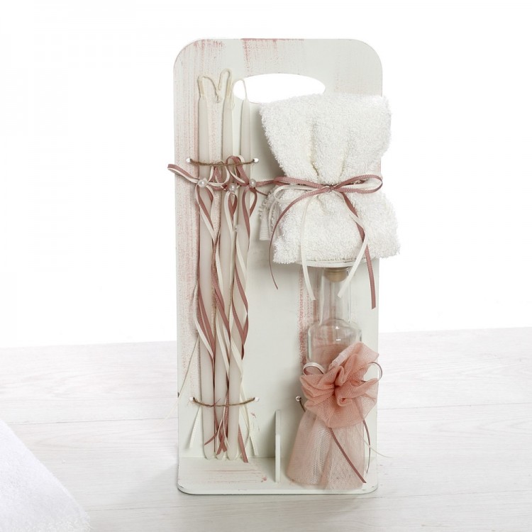 ✔ Σετ λαδιού με μπουκαλάκι, σαπούνι και κεράκια, διακοσμημένα με ροζ φιόγκους και δαντέλες.