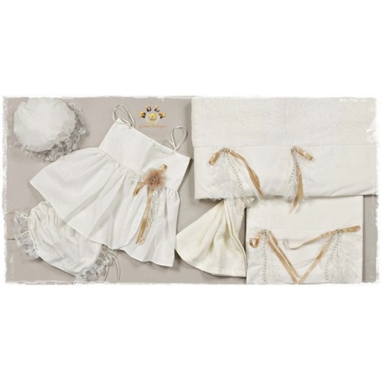 Σετ λαδόπανα ,περιλαμβάνει: σεντόνι, πετσέτα μεγάλη , πετσέτα μικρή , εσώρουχα, καπελάκι
