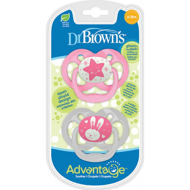Dr. Brown's Advantage Night Σιλικόνης Pink Star 6-18m 2τμχ