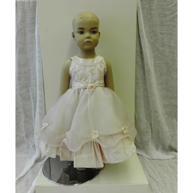 Φόρεμα ρόζ, από μεταξωτό ταφτά με τούλι και κέντημα στο στήθος με ασορτί καπέλο.
