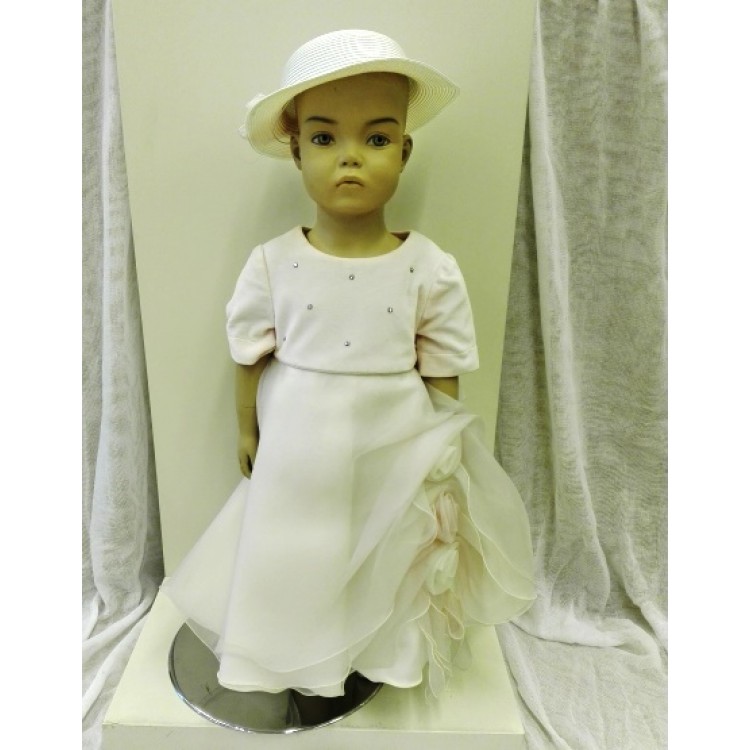 Φόρεμα Βάπτισης ρόζ λευκό οργάντζα με βελούδινο μπούστο και ασορτί καπέλο.