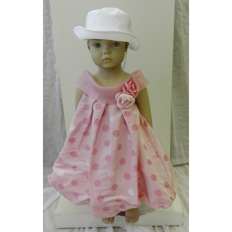 Φόρεμα Βάπτισης μπαλούν από ρόζ πουά ρεντικότα και ασορτί καπέλο.