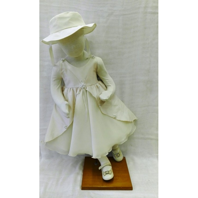 Φόρεμα Βάπτισης από μεταξωτό ταφτά και σουά σοβάζ σε αποχρώσεις ιβουάρ-ροζ με ασορτί καπέλο.