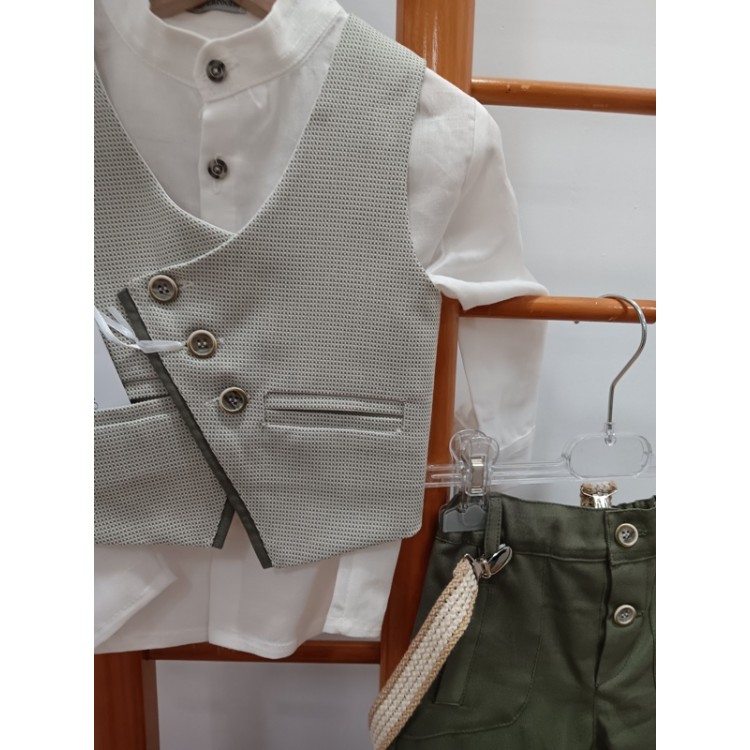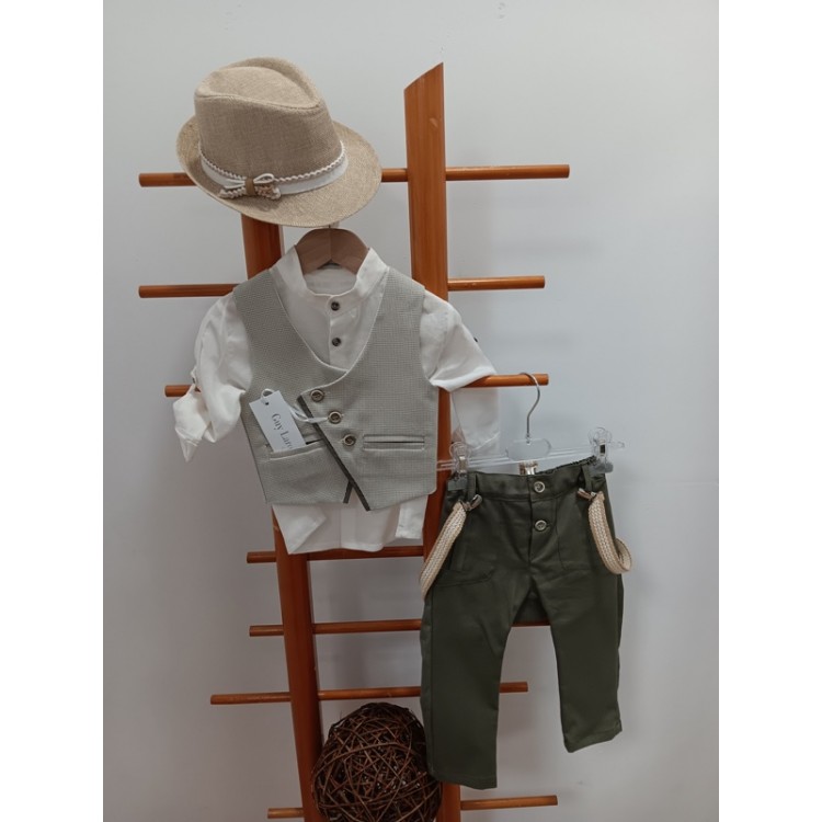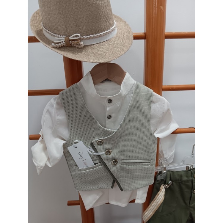 Guy Laroshe Σετ βάπτισης Μπεζ γιλέκο με Λαδί Παντελόνι