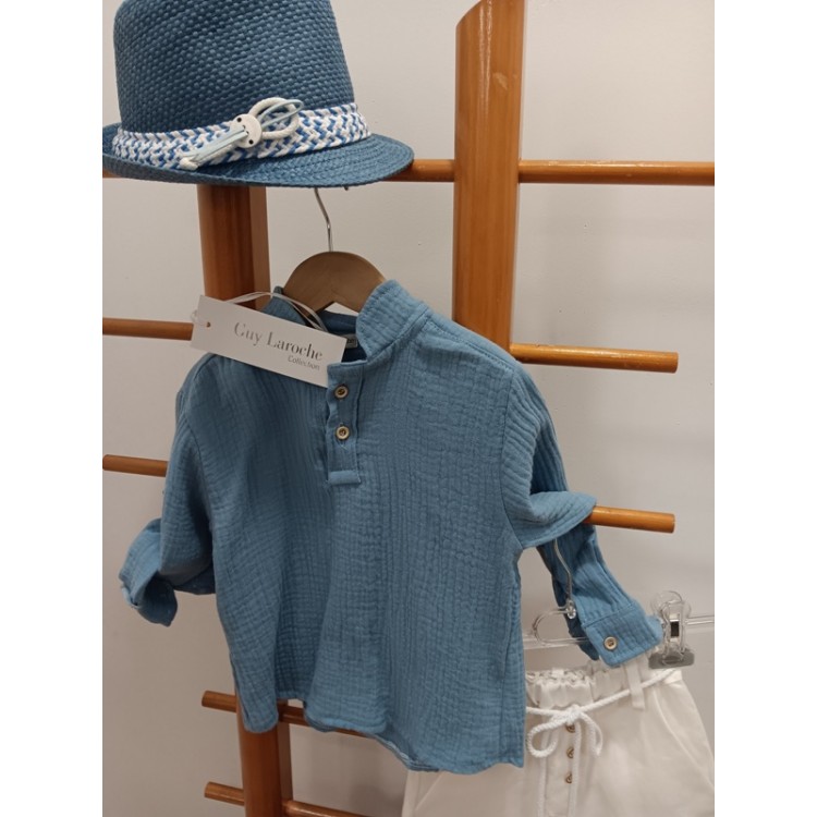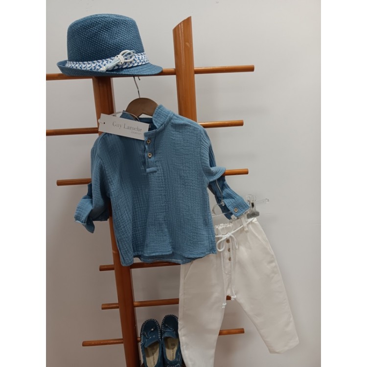 Guy Laroshe Σετ βάπτισης Σιέλ Πουκάμισο με Λευκό Παντελόνι