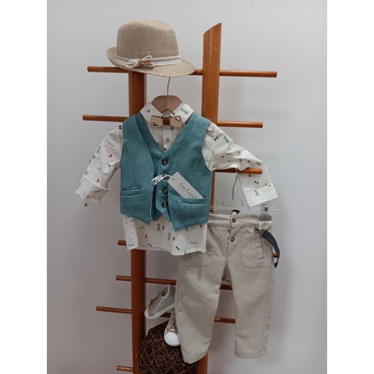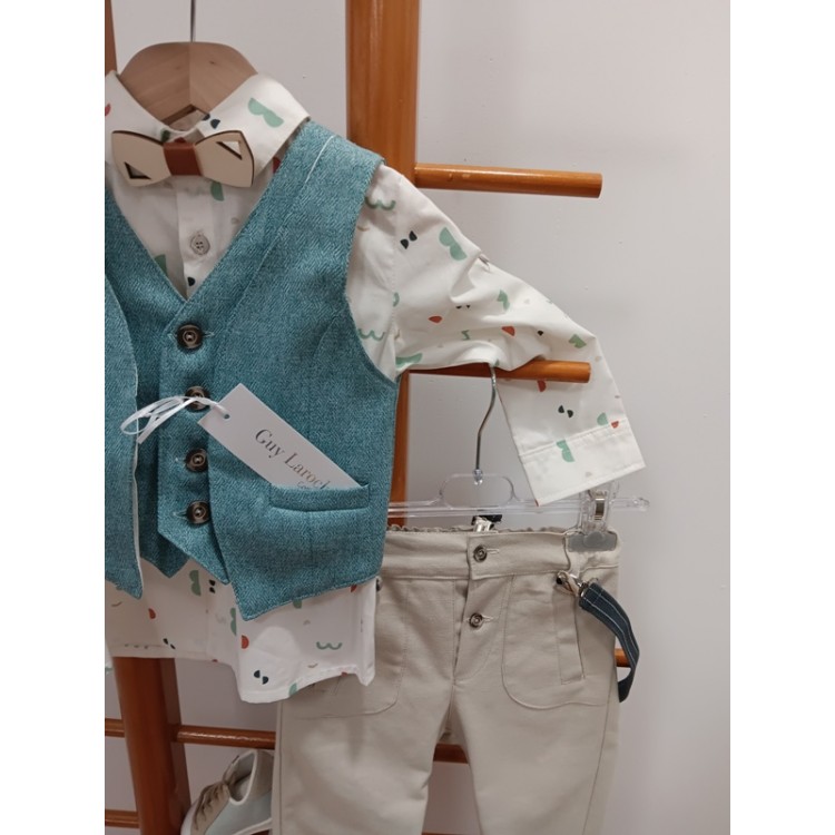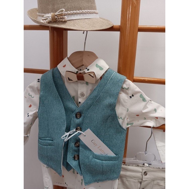 Guy Laroshe Σετ βάπτισης Σκούρα μέντα με μοτίβα και μπεζ παντελόνι