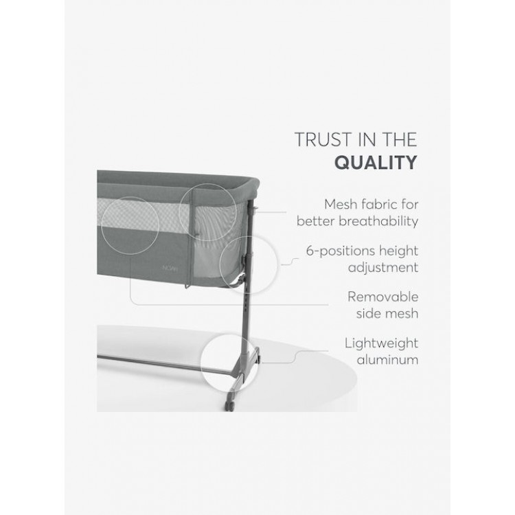 Kikka Boo Λίκνο Noah με Στρώμα και Πλαϊνό Άνοιγμα Dark Grey 31003020092