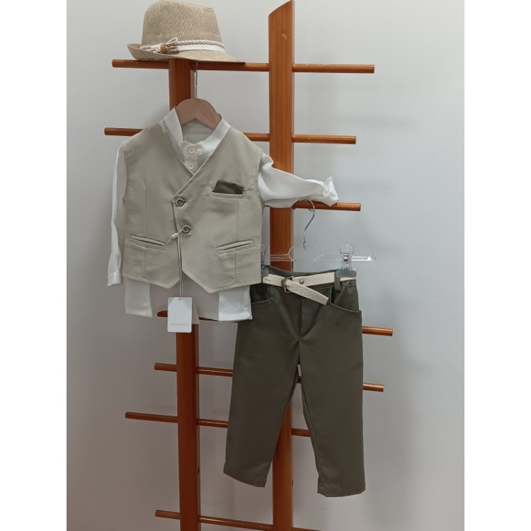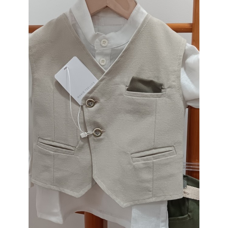 Makis Tselios Σετ βάπτισης Μπεζ Γιλέκο με Χακί Παντελόνι