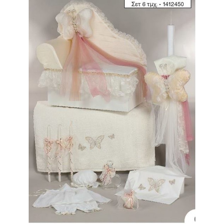 Σετ βάπτισης καναπεδάκι μπέζ με πεταλούδες ΣΕΤ ΒΑΠΤΙΣΗΣ ΚΟΡΙΤΣΙ