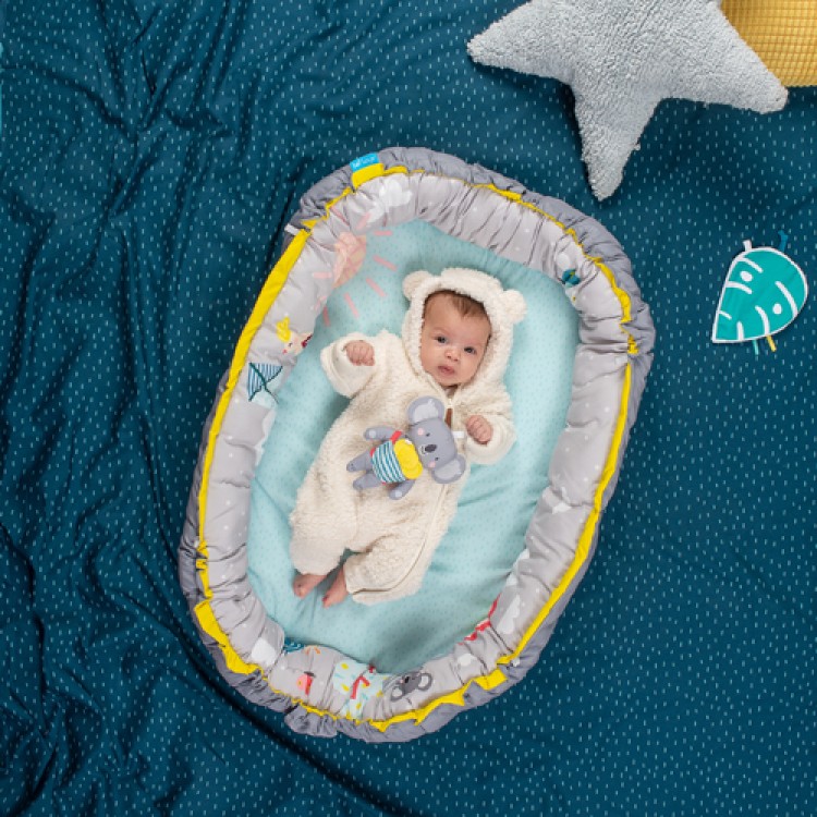 Περιλαμβάνει 5 πολύ-αισθητηριακά παιχνίδια – Κοάλα με μασητικό οδοντοφυΐας και παιχνιδιάρικη τσέπη, πεταλούδα με κρίκο κουδουνίστρα , ουράνιο τόξο, βρεφικό καθρέφτη ασφαλείας και ένα μουσικό παιχνίδι με πολύχρωμα φώτα.