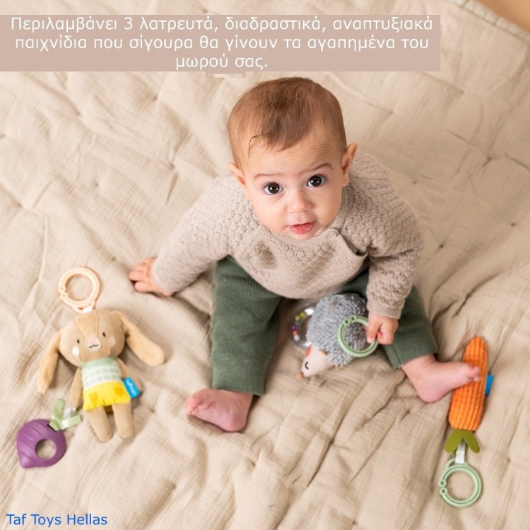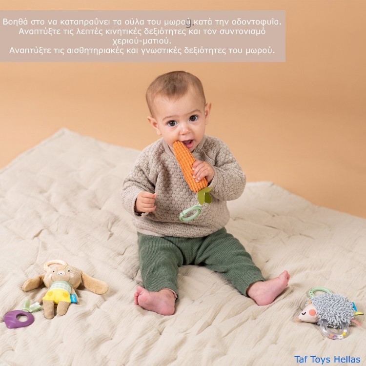 Με τον χαριτωμένο σχεδιασμό και τον κροταλιστικό ήχο του, βοηθά στην ανάπτυξη των λεπτών κινητικών δεξιοτήτων και του συντονισμού χεριού-ματιού ενώ παρέχει αισθητηριακή διέγερση.